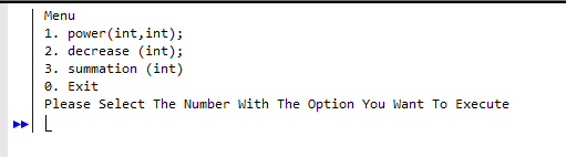 This is a small project that was assigned to me in ICS 211. I was tasked to make some simple math operations but the challenge was to use recursions for those operations. The code I created when run would open up a menu in the terminal that would ask the user to choose which operation they wanted to do. In this case, I coded for the power operation, a decrease function, and a summation operation. Although these were very simple operations, it took me a long time to figure out how to write the code in recursion.